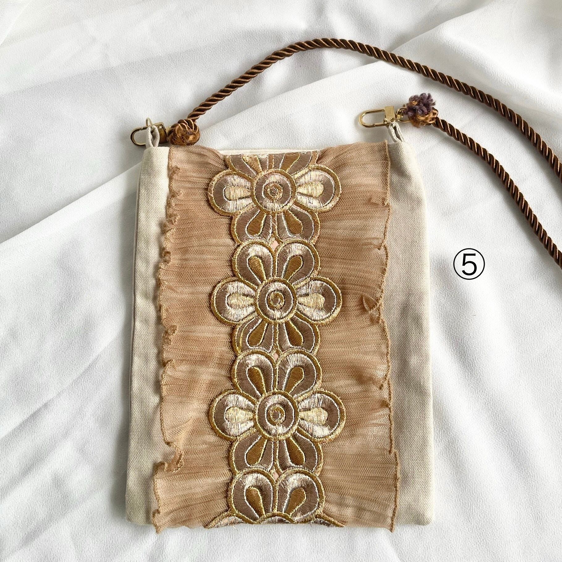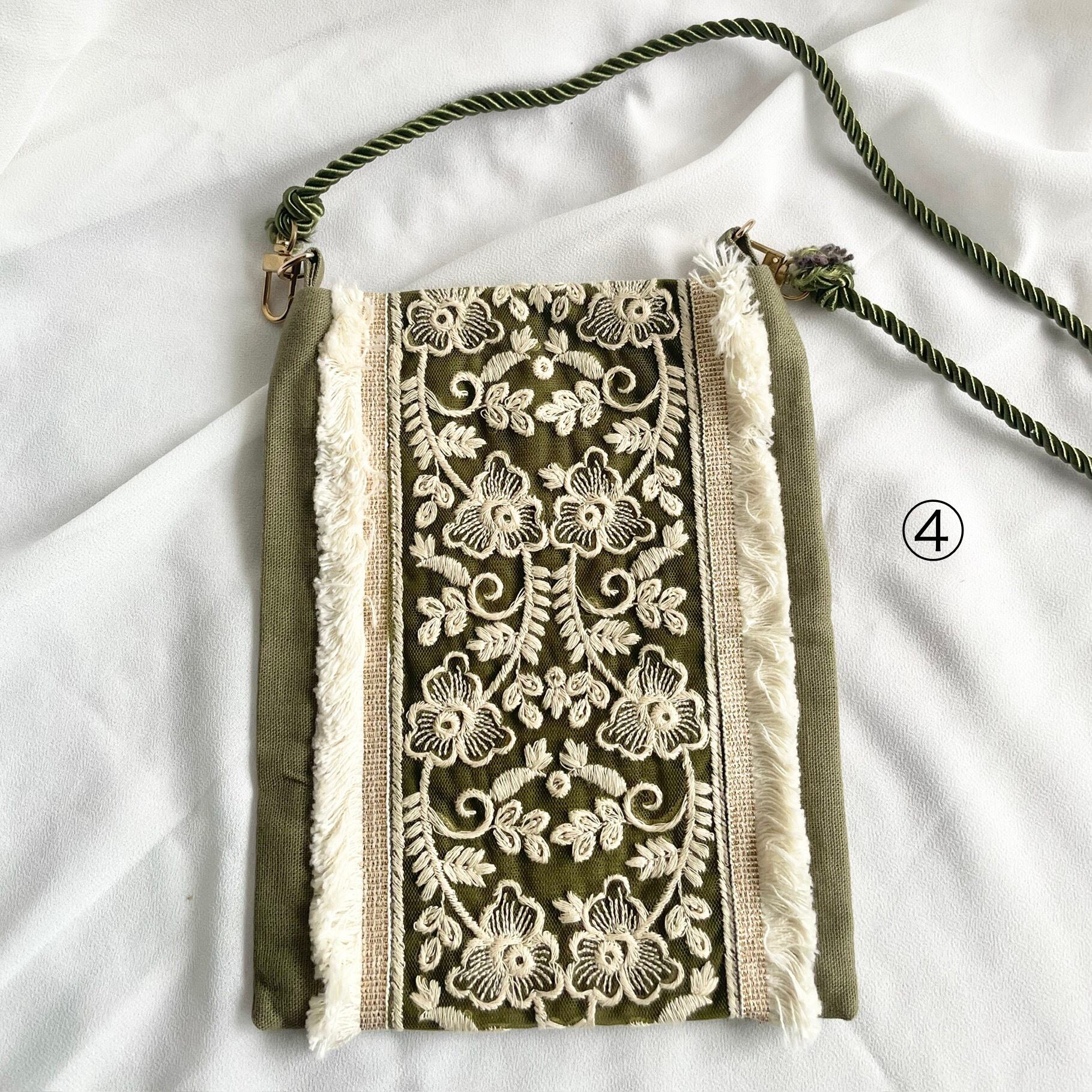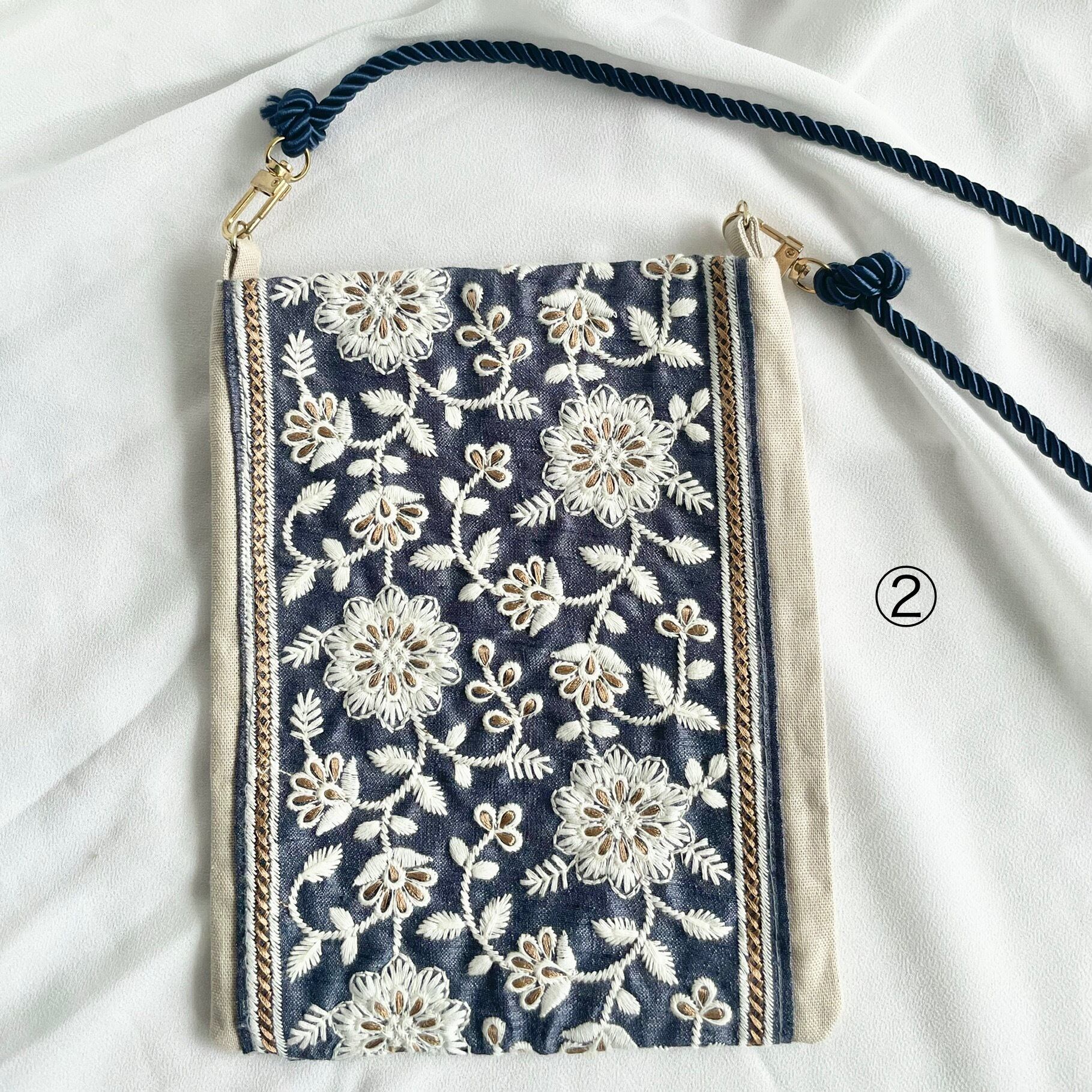 コットンキャンバス×インド刺繍リボンの合わせがかわいいスマホショルダーポーチです♡