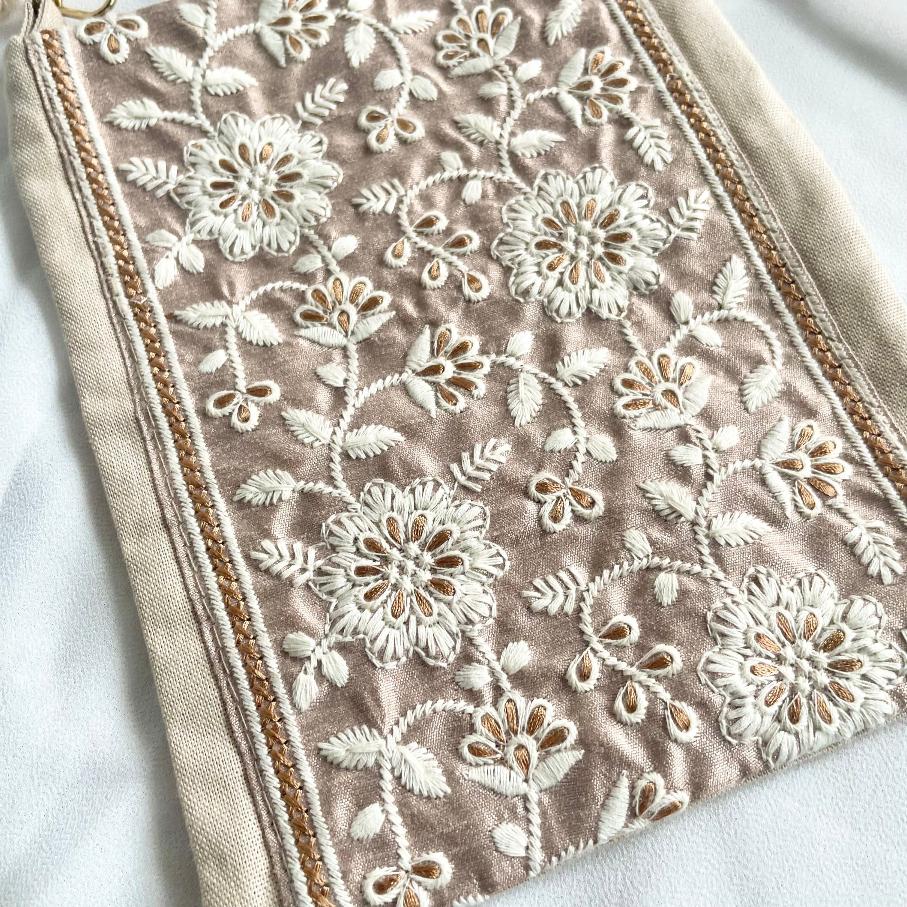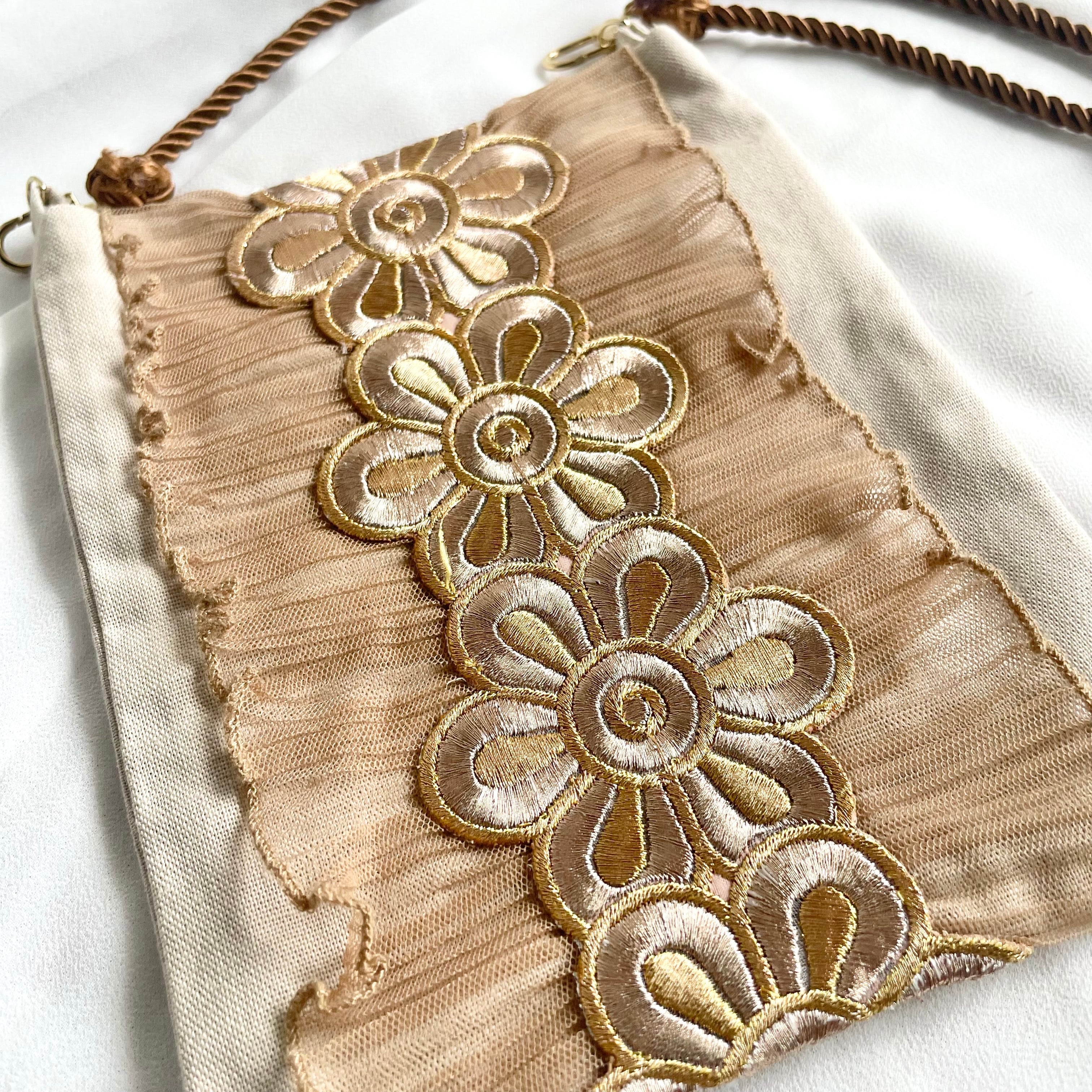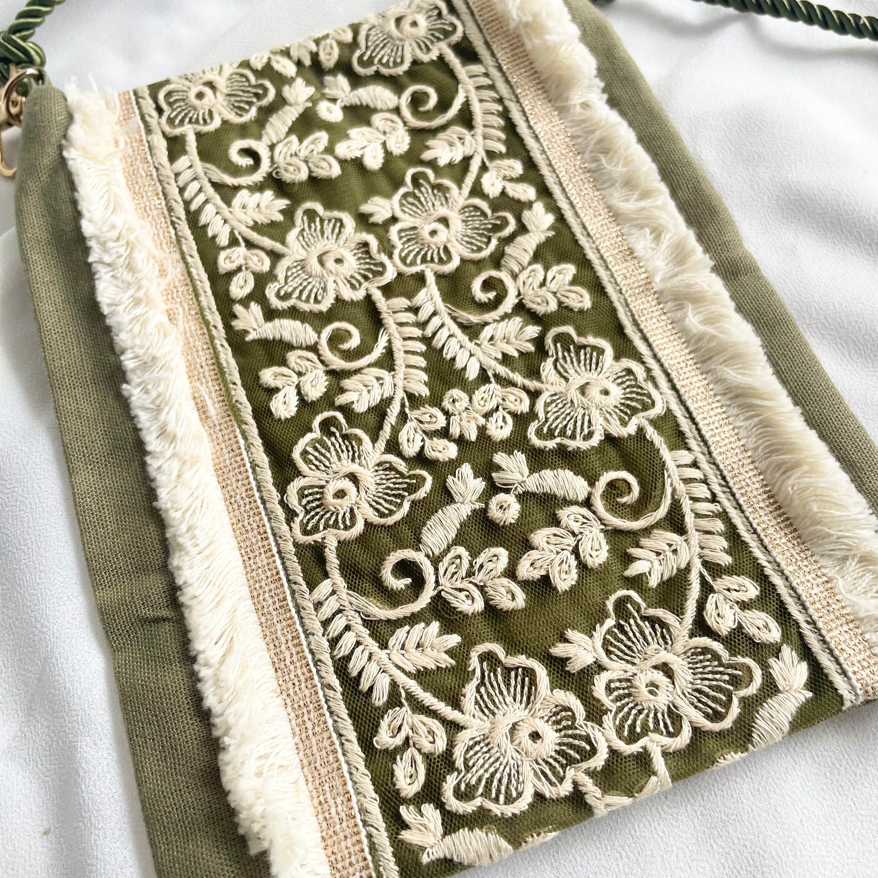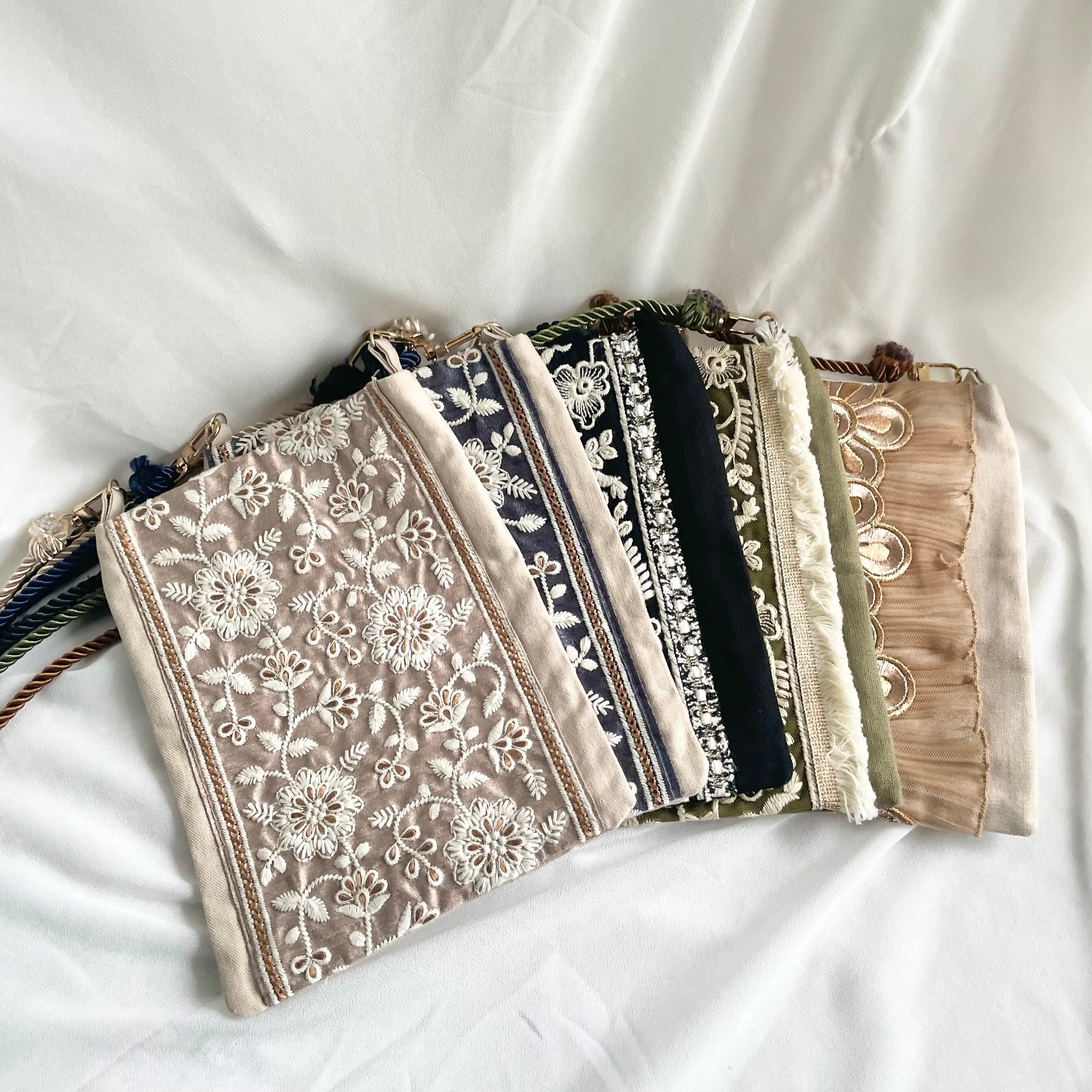 コットンキャンバス×インド刺繍リボンの合わせがかわいいスマホショルダーポーチです♡