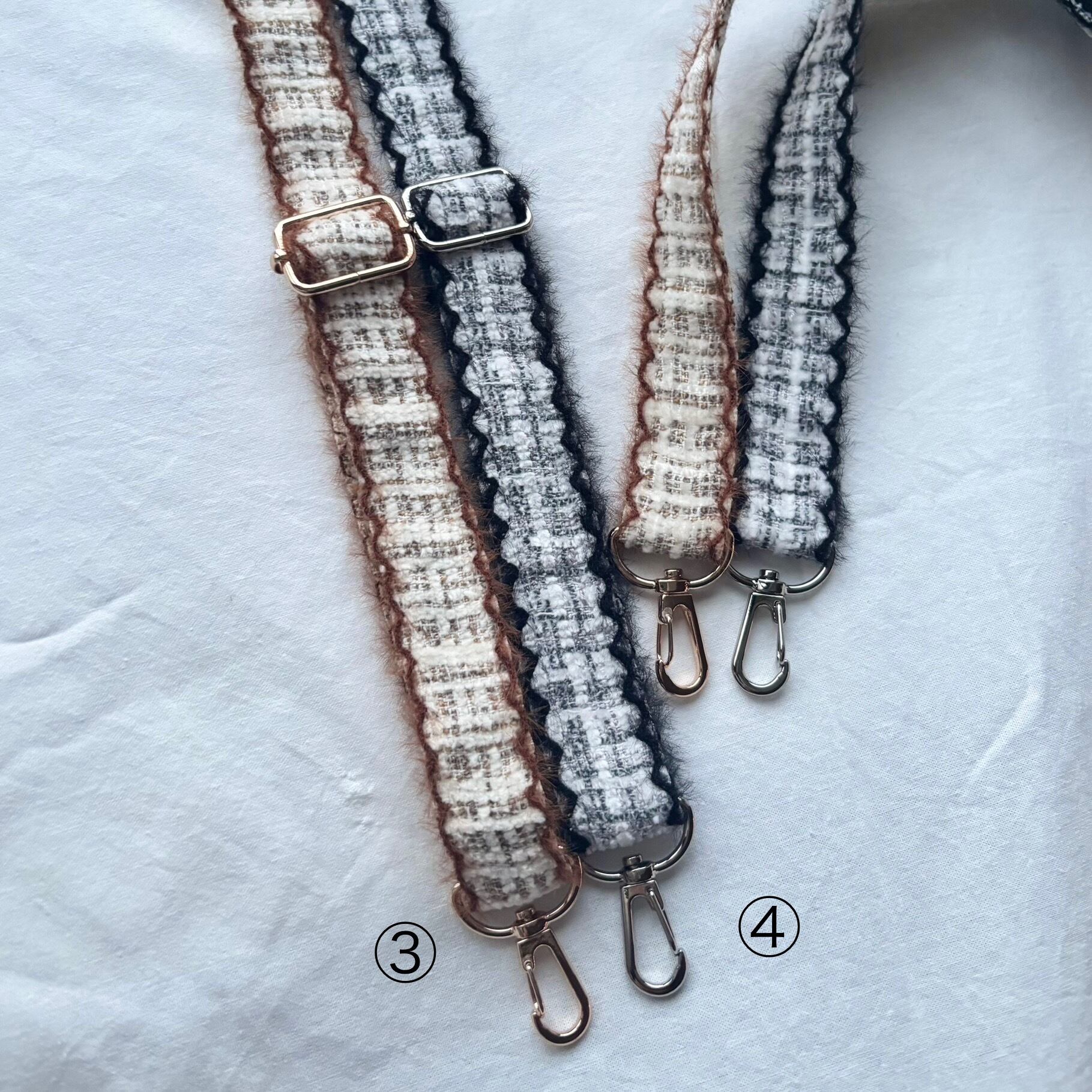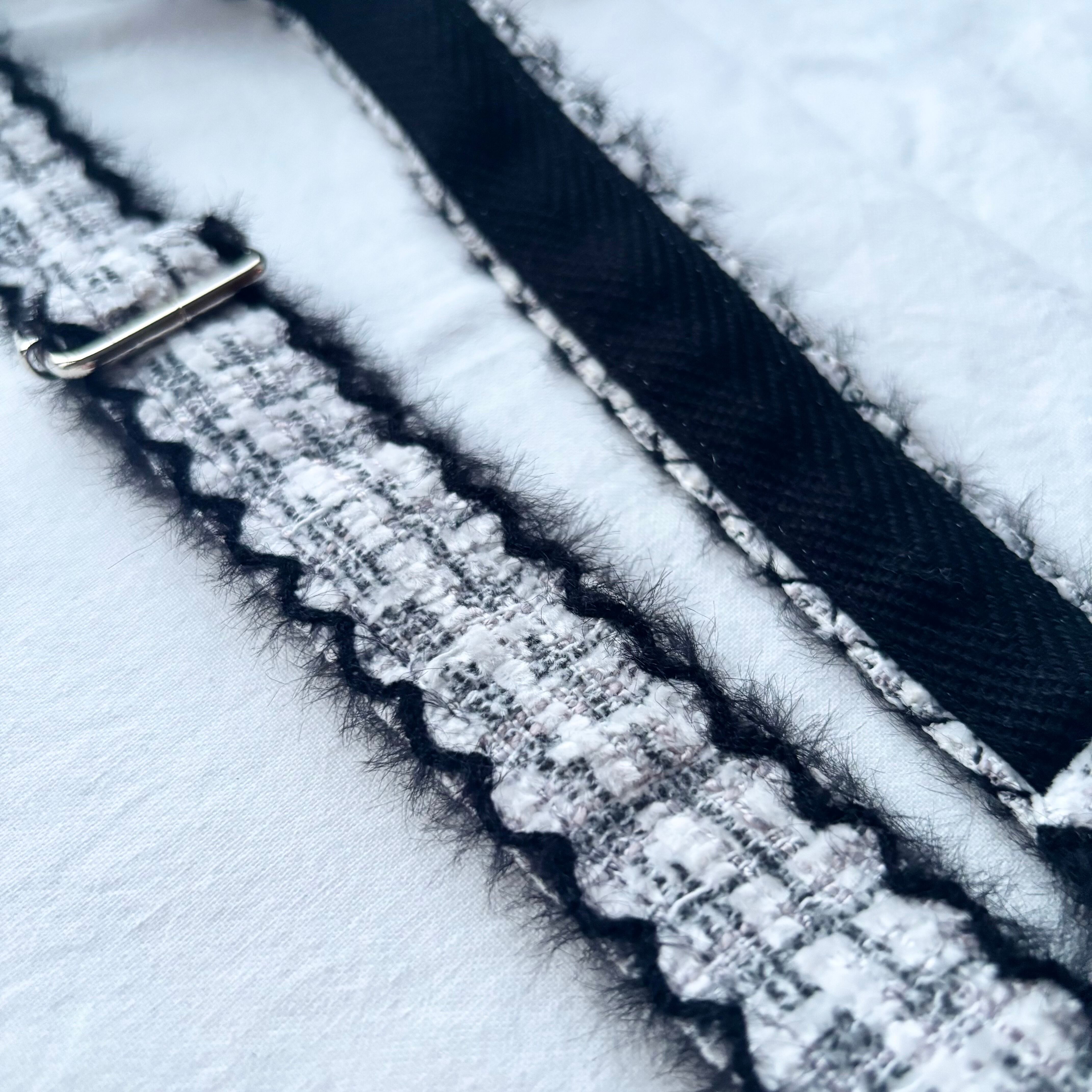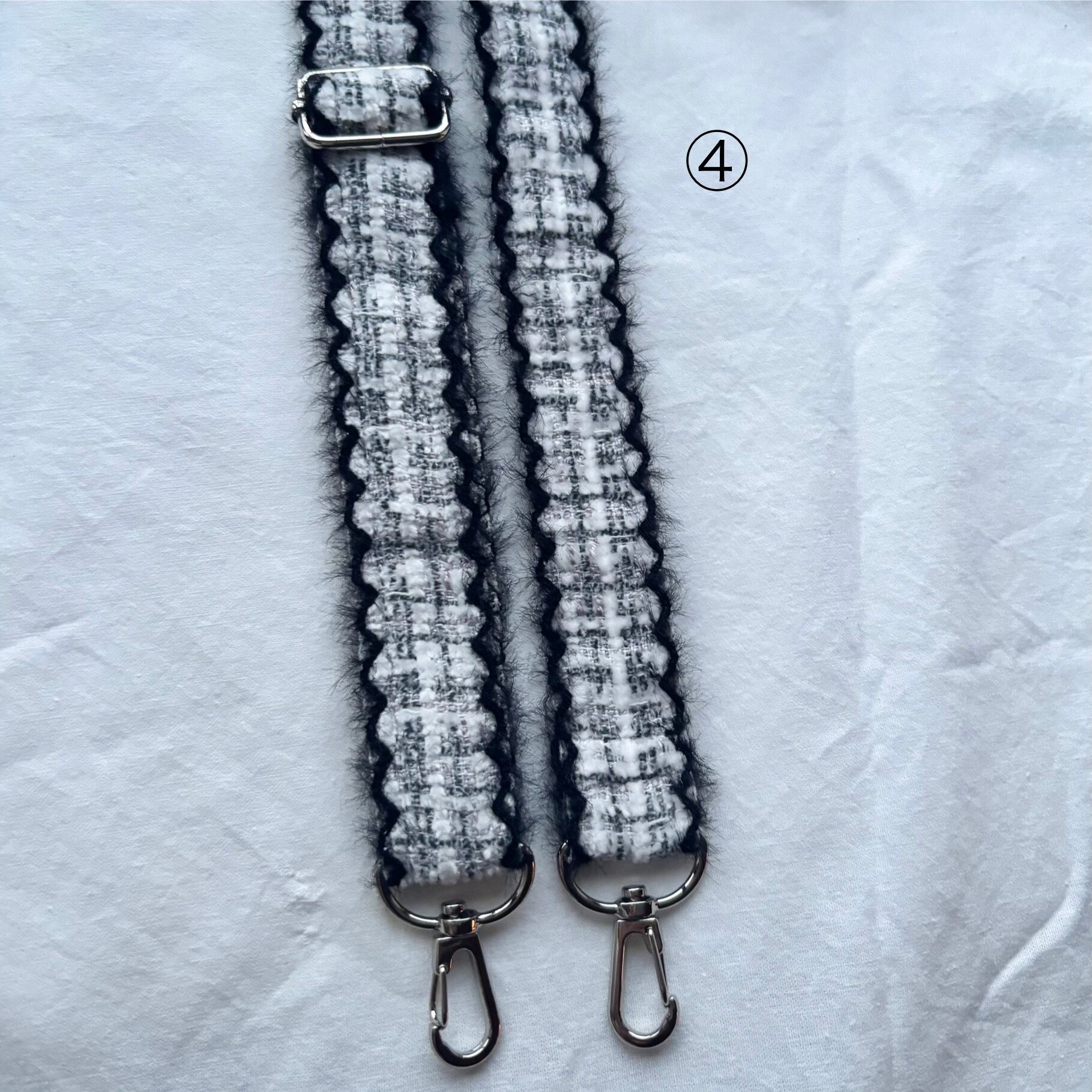 ミックスカラーがかわいいツイードとフェザーのような素材感とスカラップが特徴的な2種類のツイードのショルダーストラップ♡