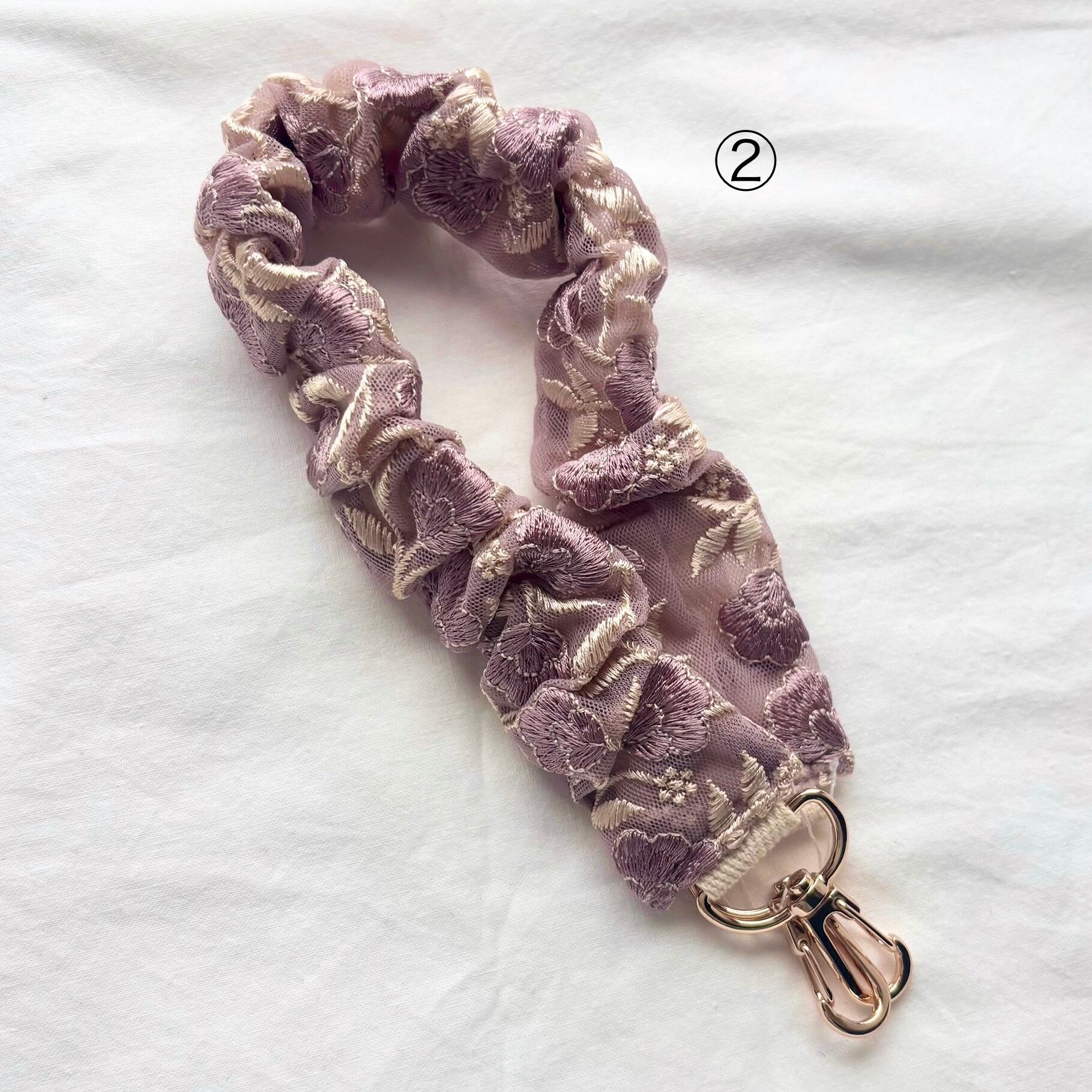 インド刺繍リボンを贅沢に使用した、くしゅっとしたデザインが可愛いハンドストラップです♡