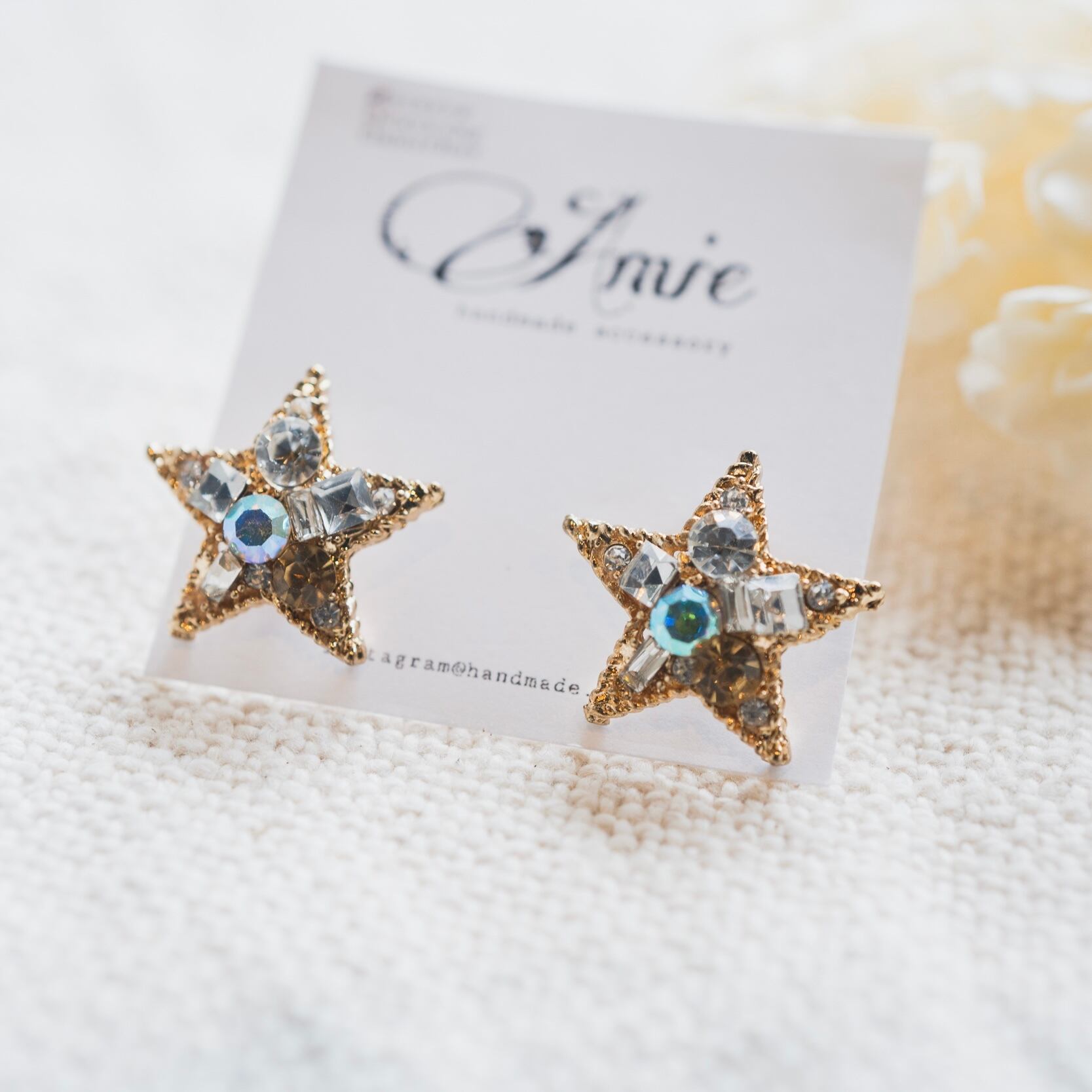 キラキラのビジューが豪華な星のピアスとイヤリングです✩⋆*