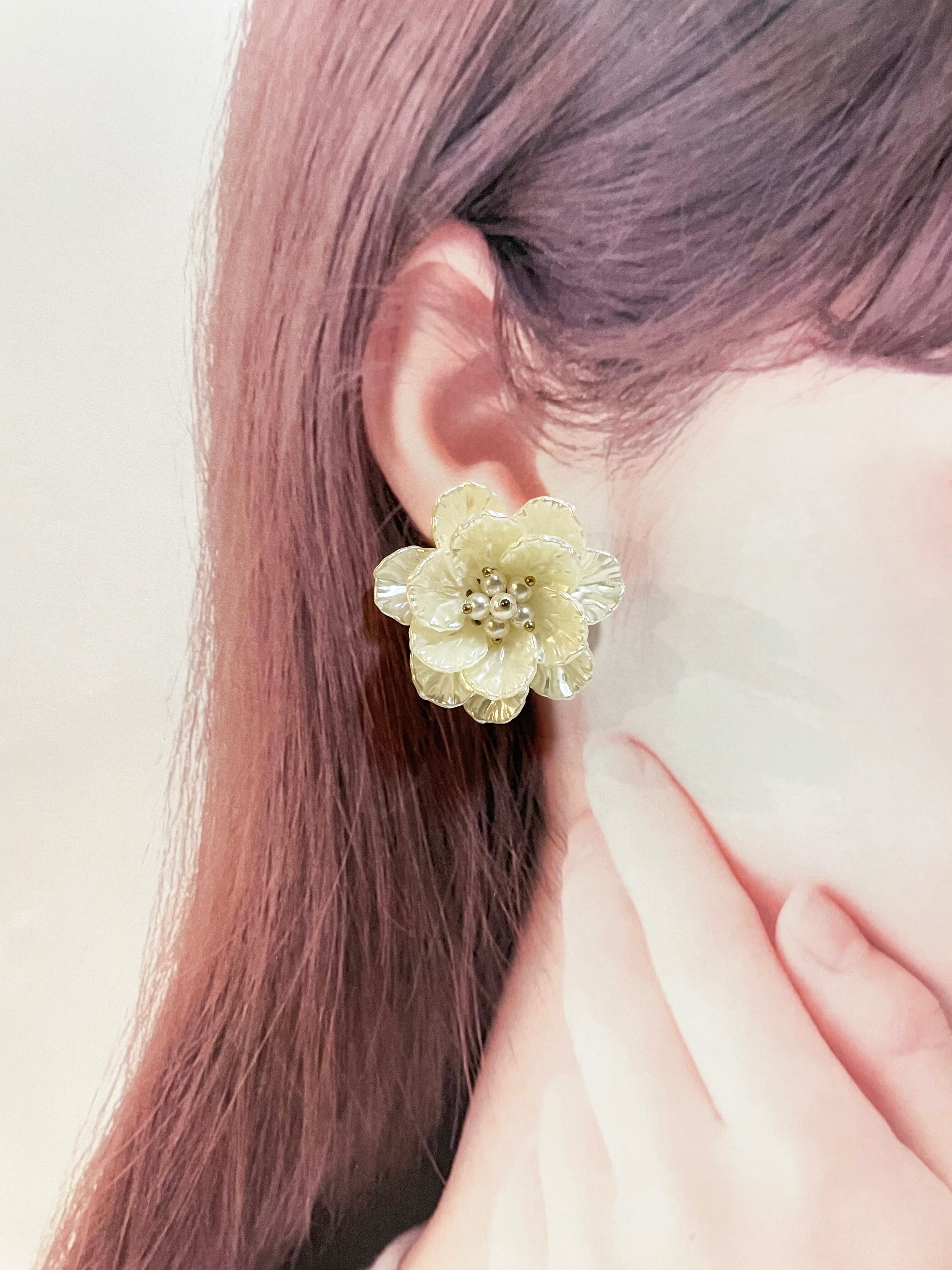 パールの花びらがとっても華やかなイヤリングとピアスです❁