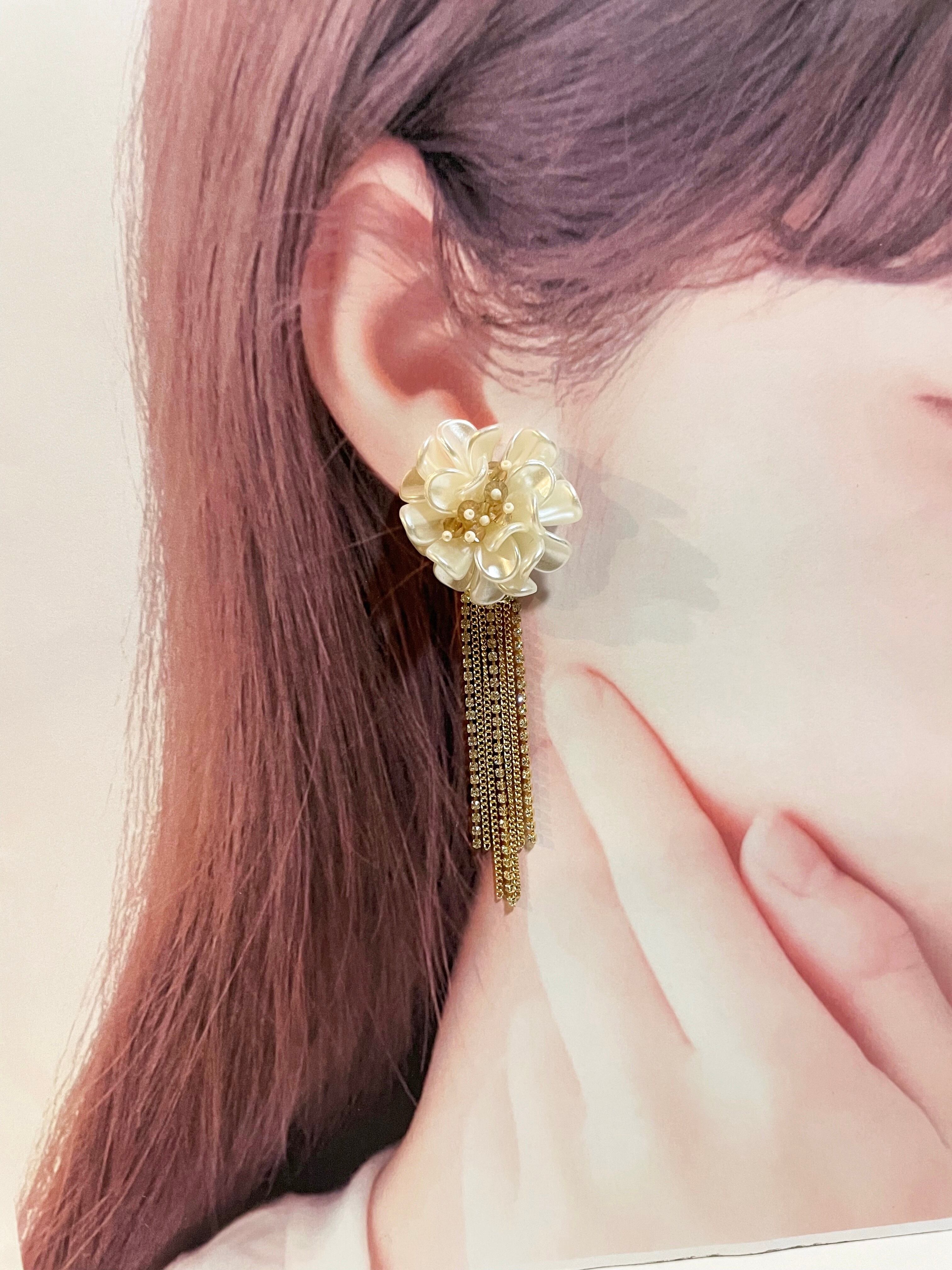 2way★パールフラワー×ビジューチェーンイヤリング