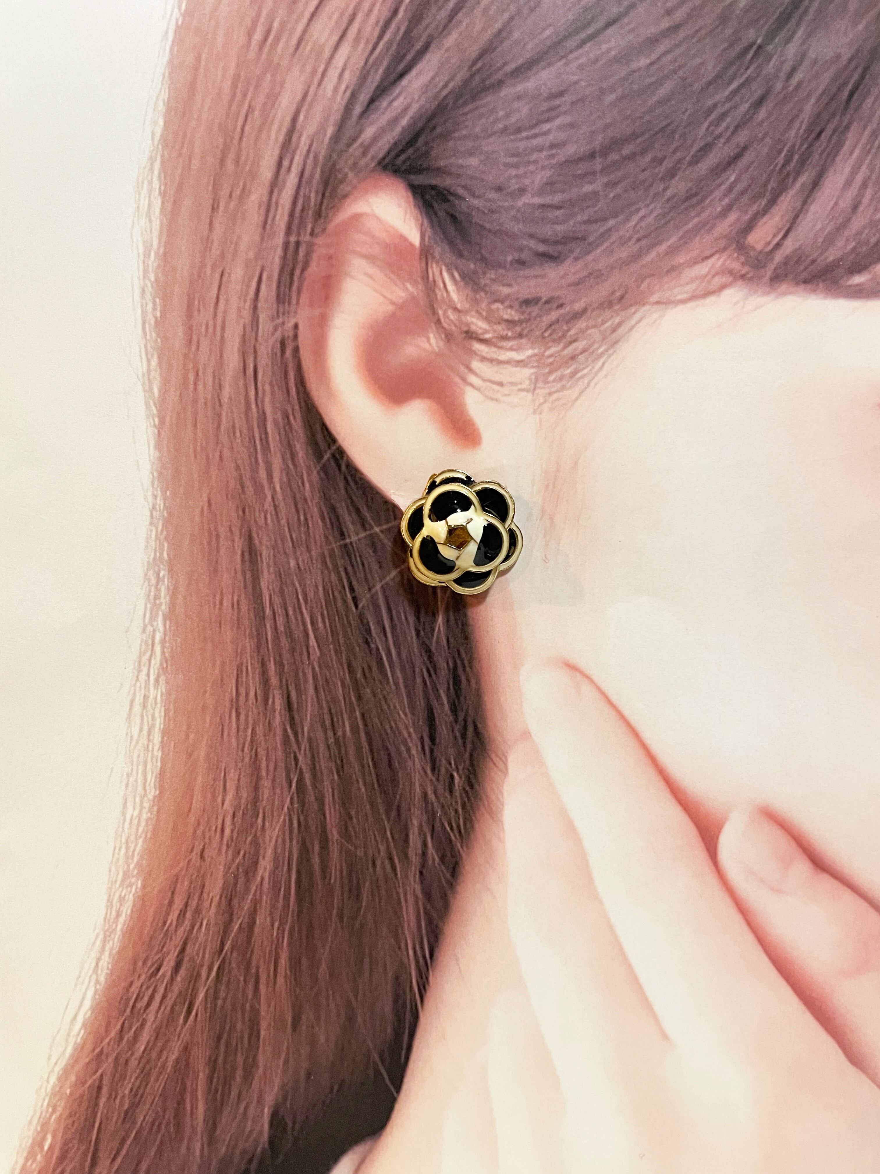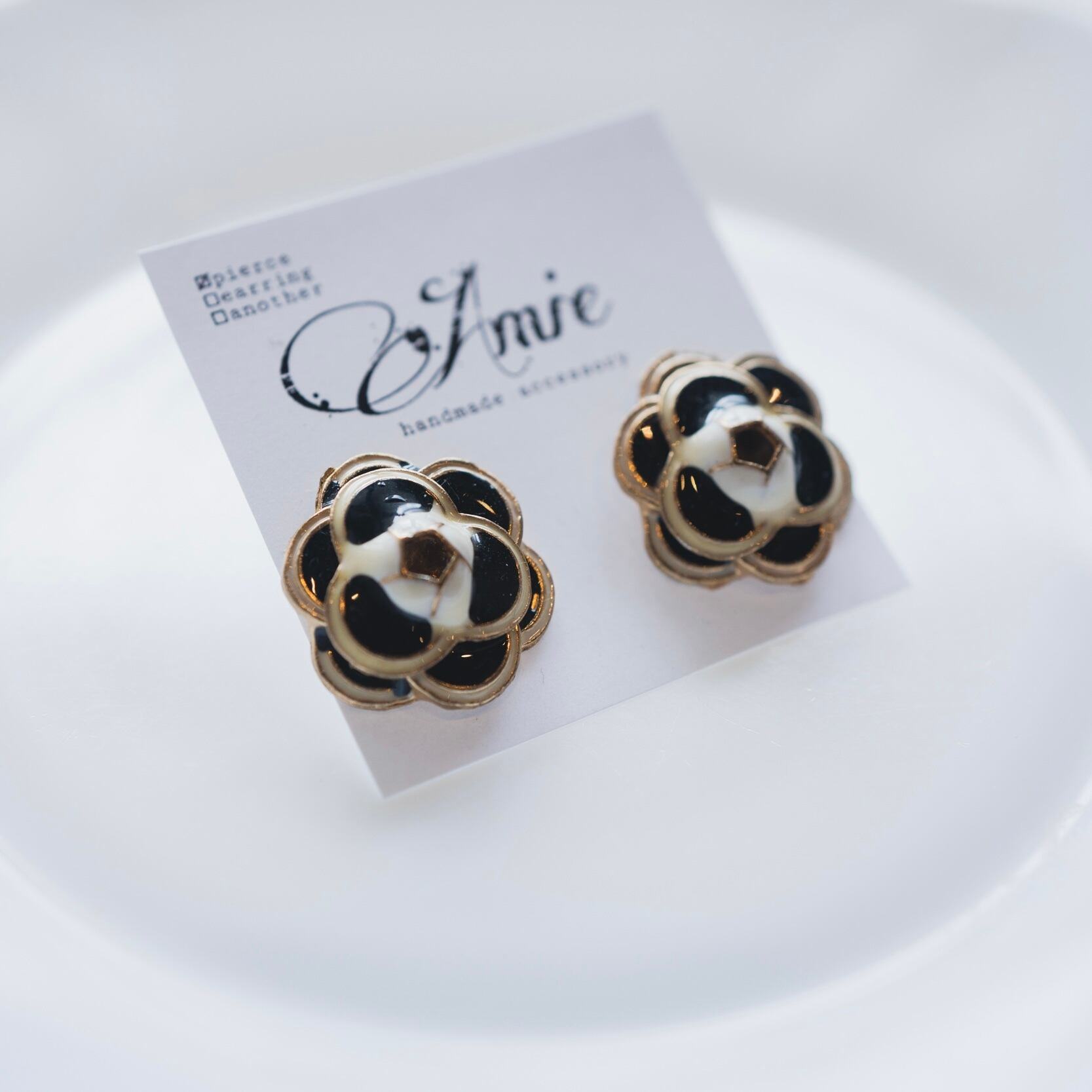 モノトーンのカメリアのお花がかわいいイヤリングとピアスです❁