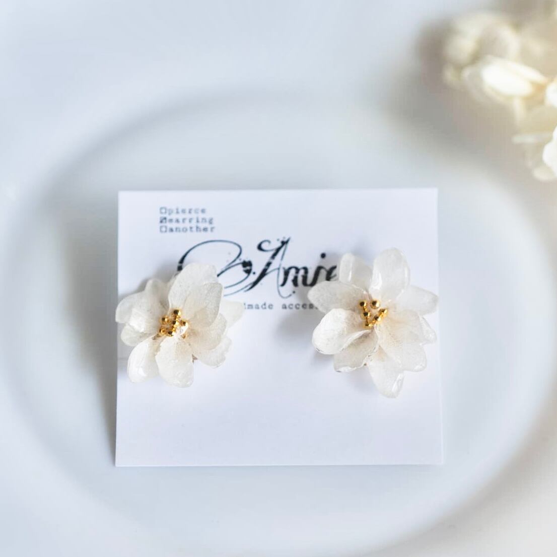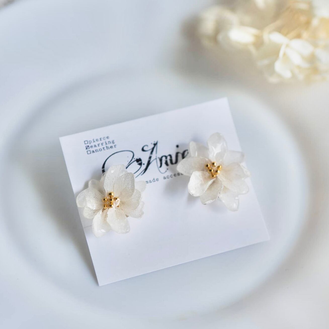 本物の紫陽花のドライフラワーを使ったイヤリングです❁