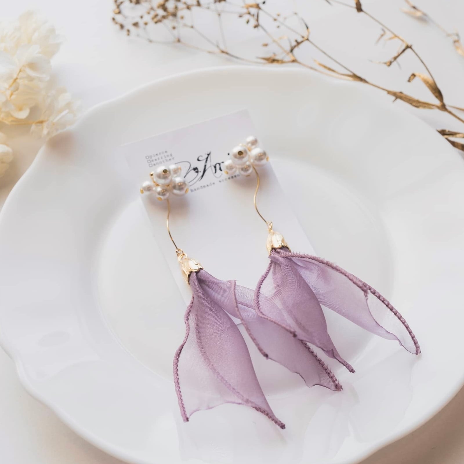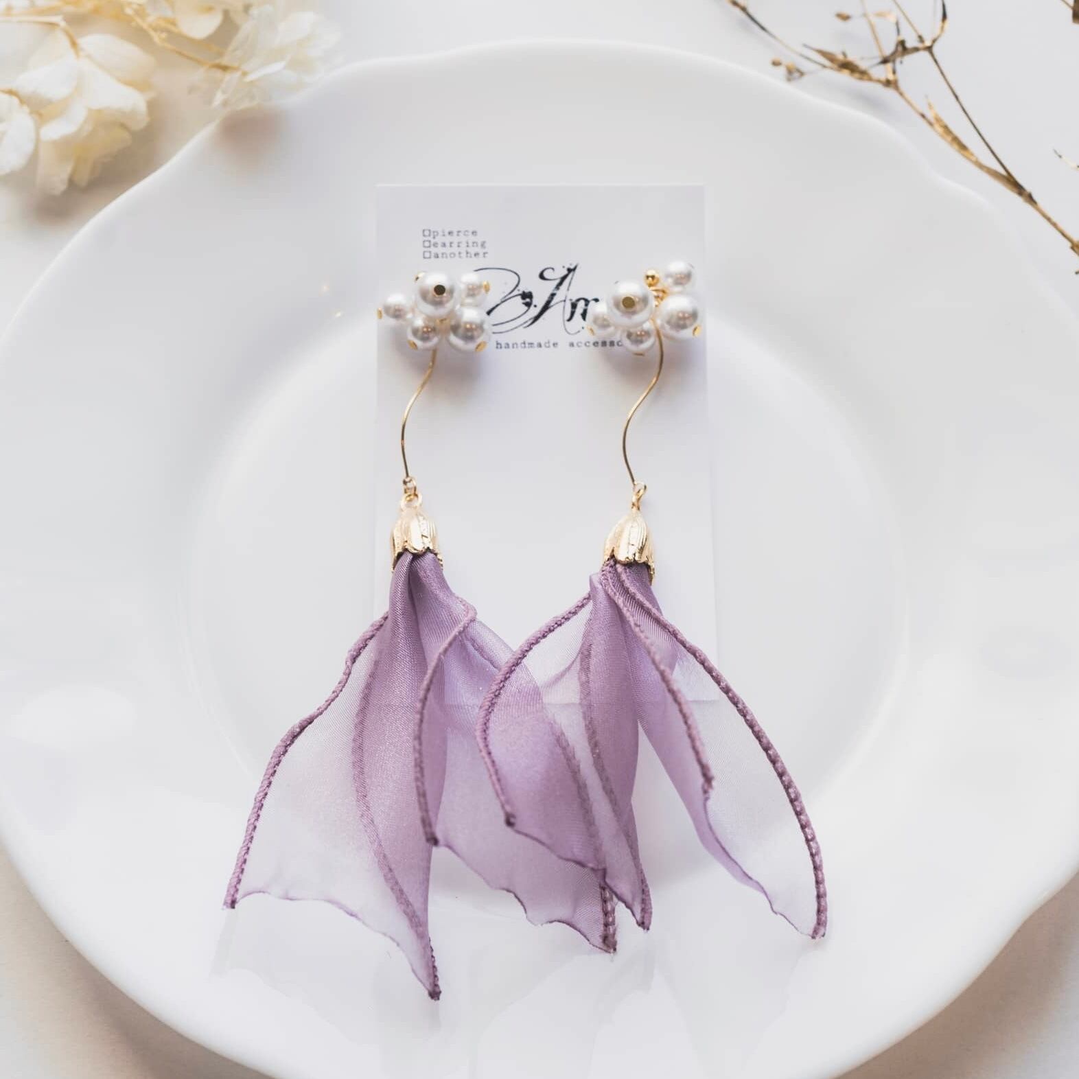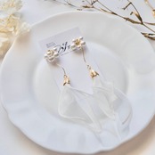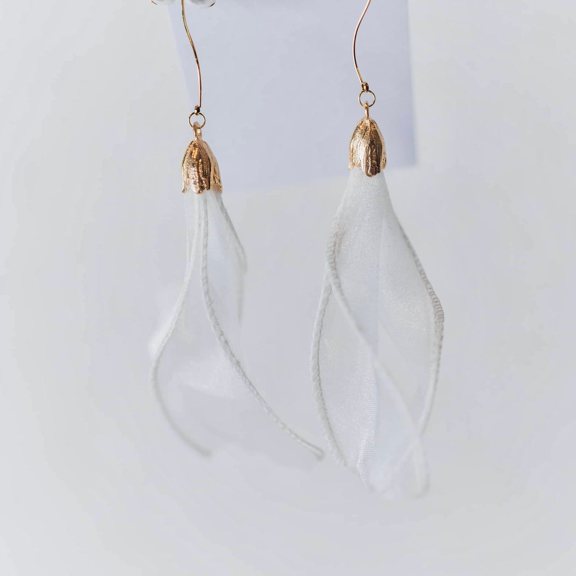 風になびくオーガンジーリボンが存在感抜群のイヤリングとピアスです!