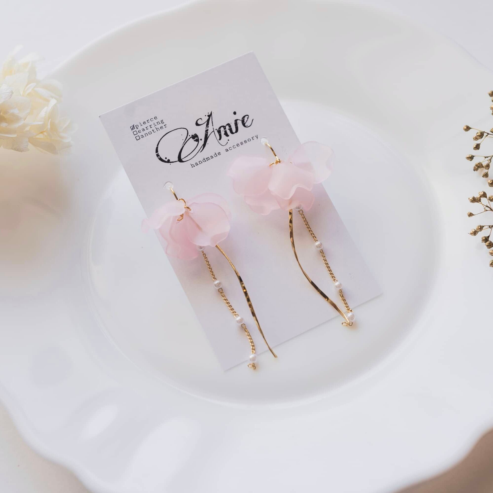 揺れる桜色フラワーピアス or イヤリング
