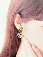 ゴールドメタルフラワーとパールの組み合わせがオシャレなイヤリングです❁