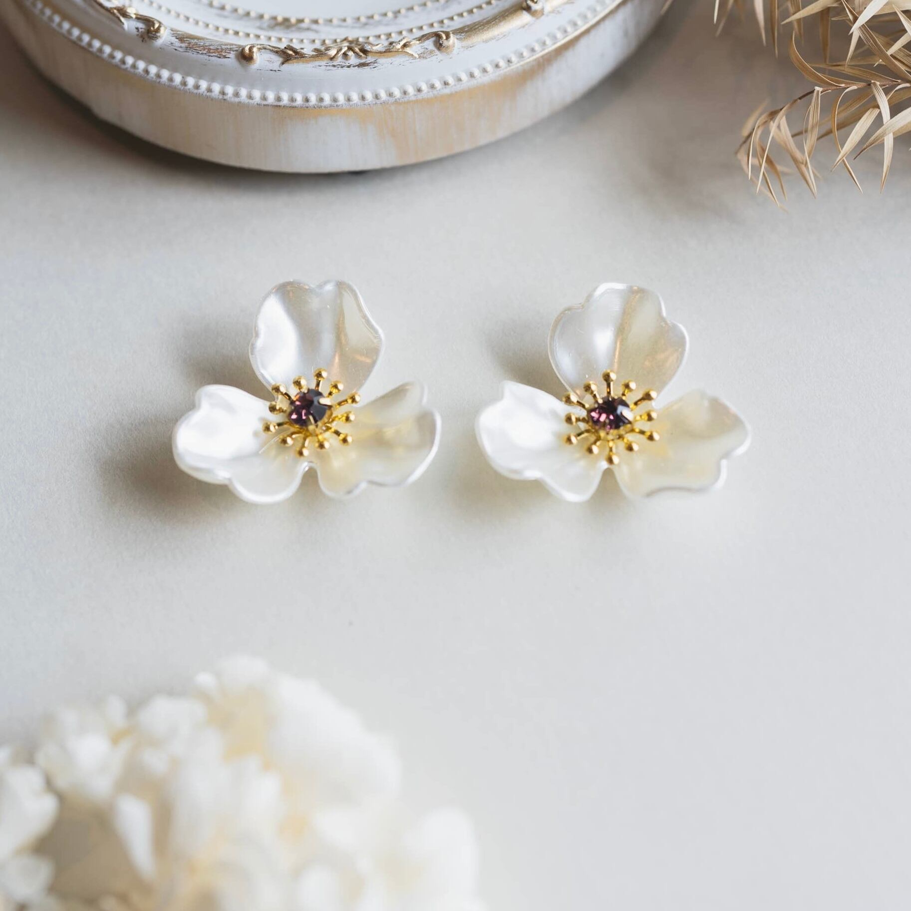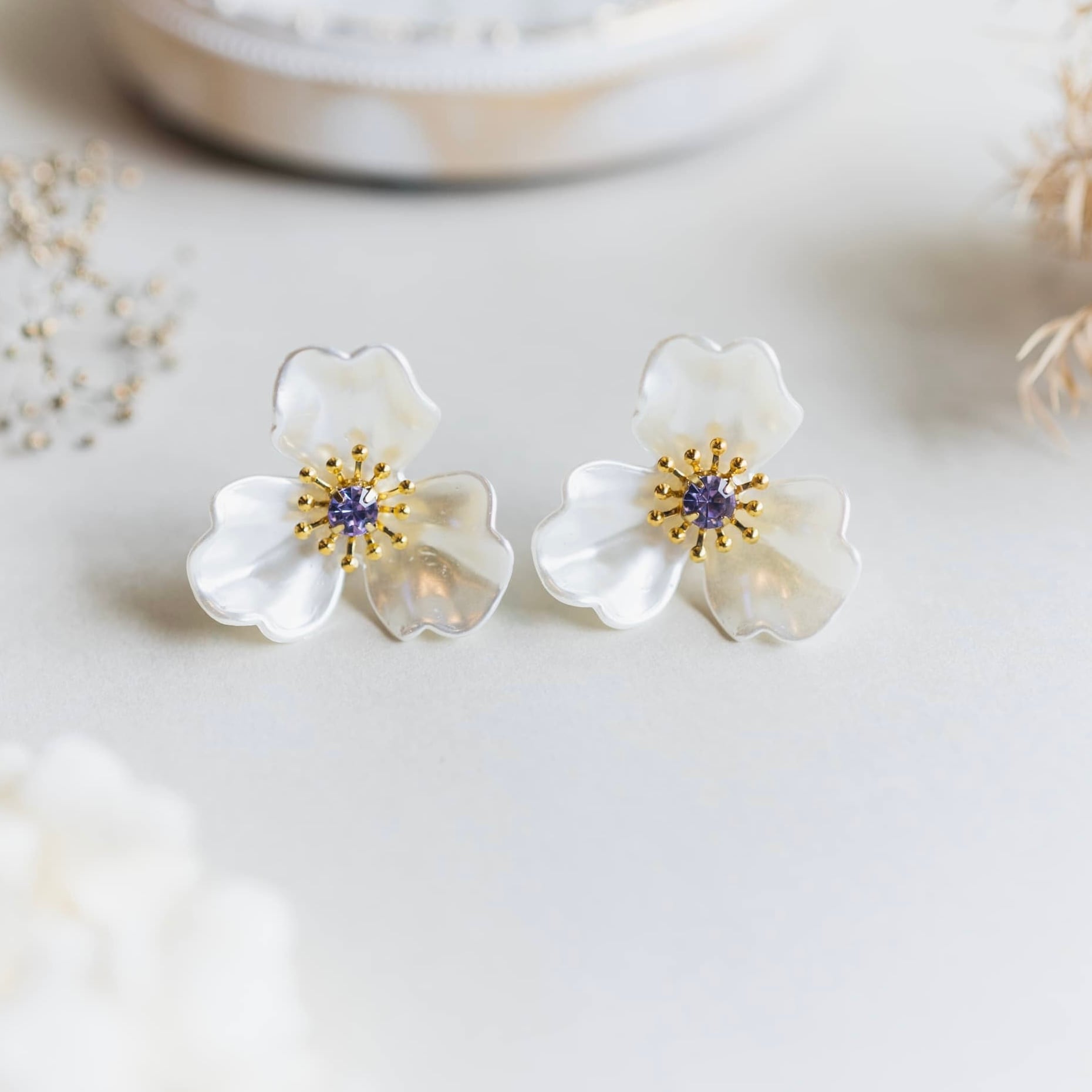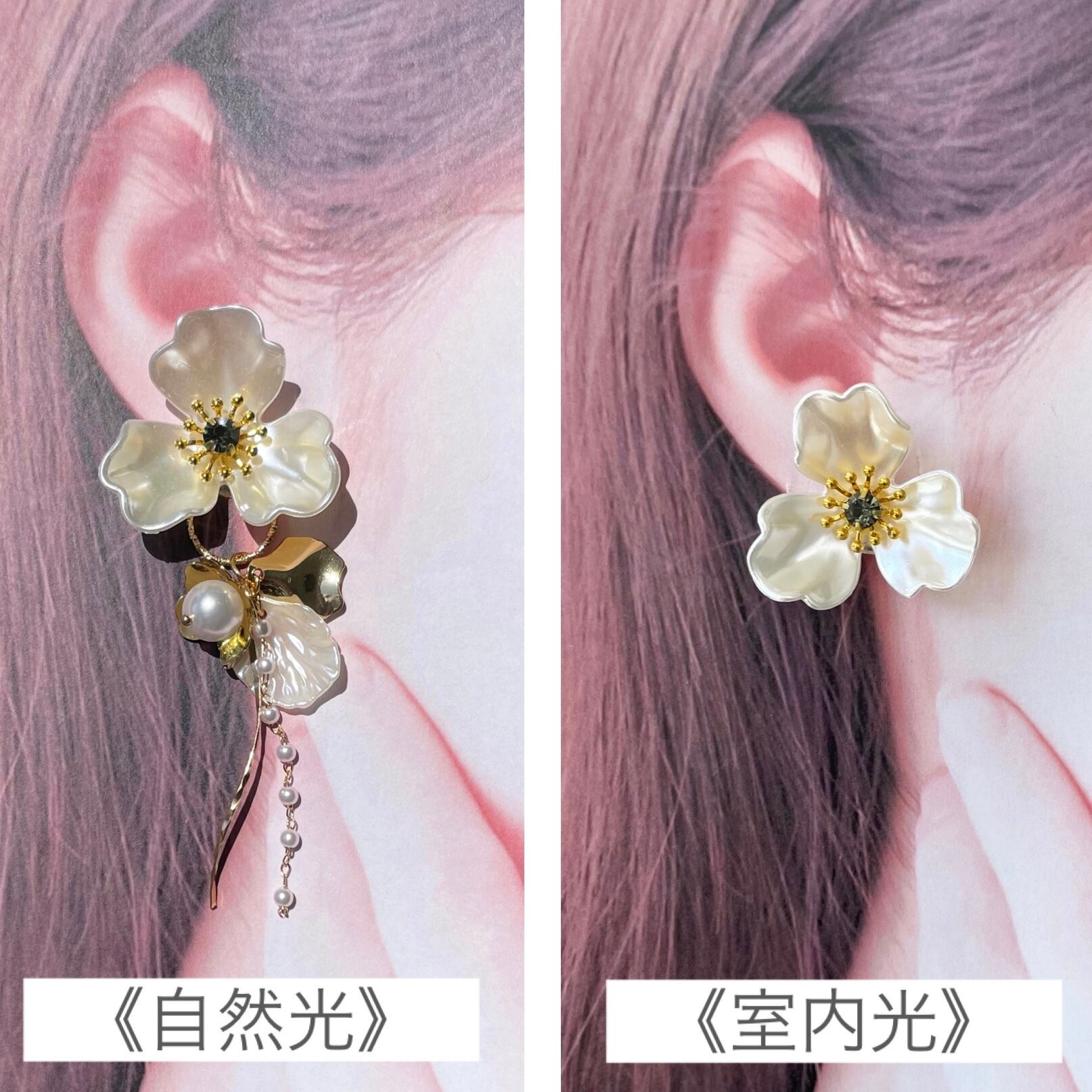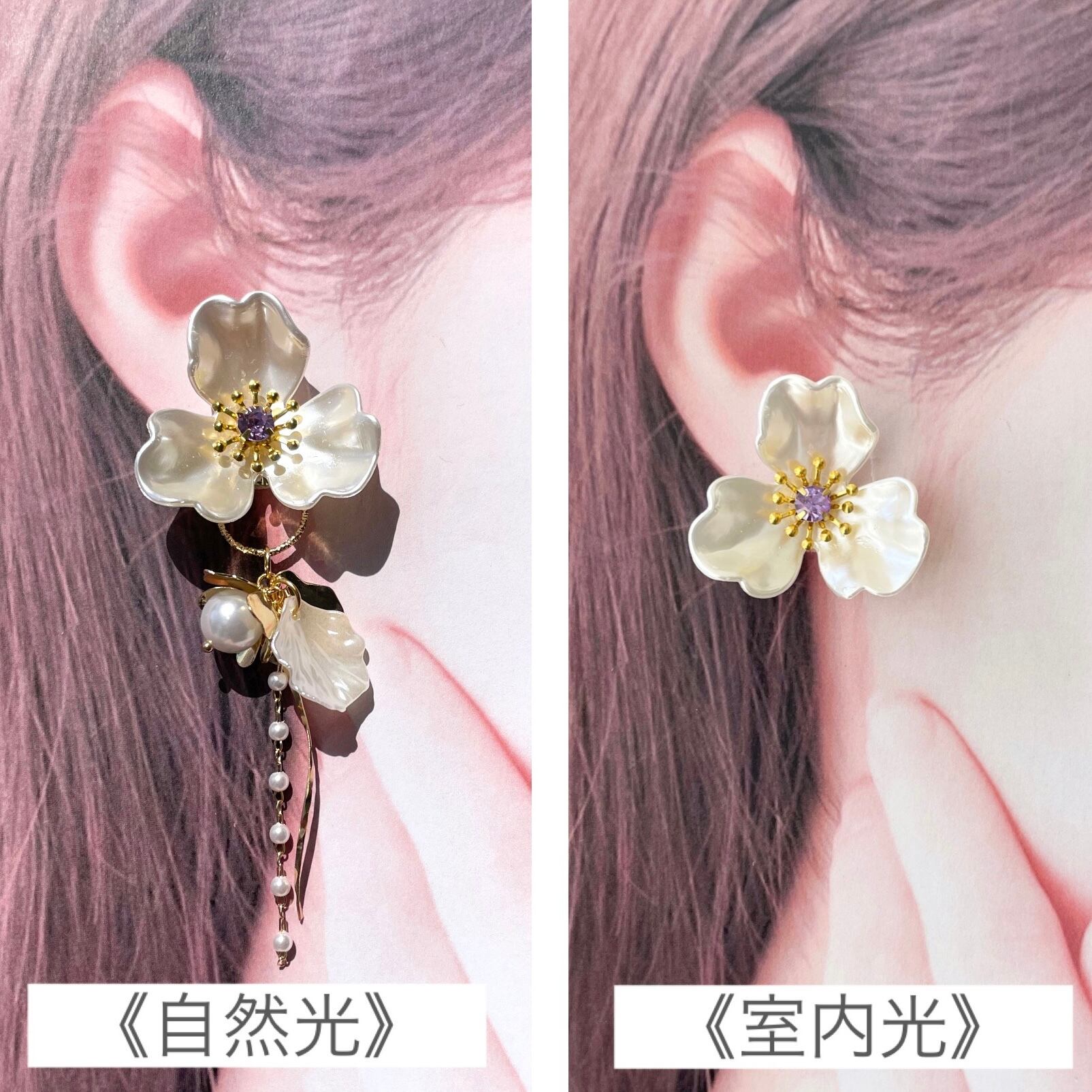 お花の中心にあるビジューは4色ご用意しており、どれも色味が絶妙にかわいく、実物はもっとキラキラしています♡