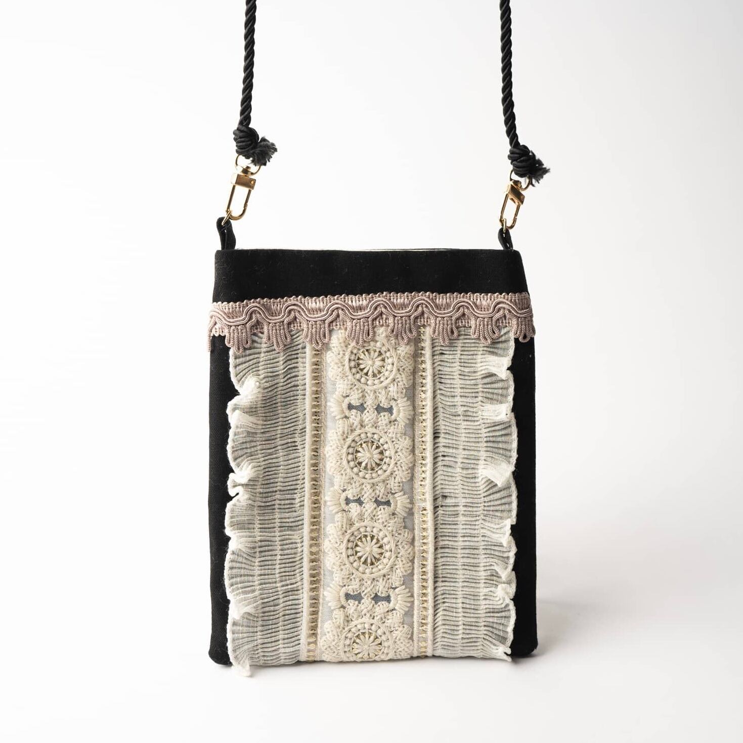 スマホやちょっとした小物だけ持ってお出かけの際に便利なインド刺繍リボン×フリルリボンのスマホポシェットです♡♡
