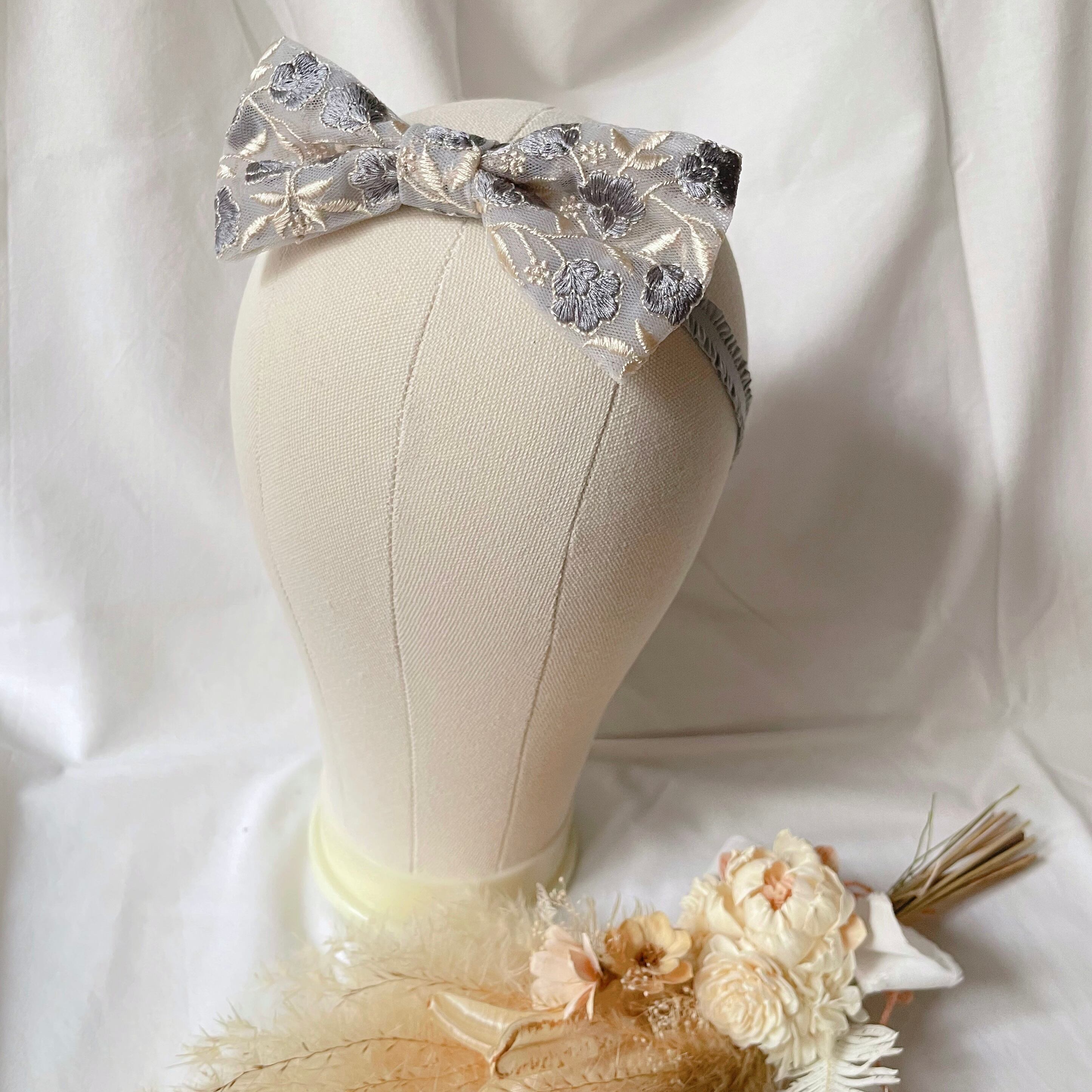 お花の刺繍がかわいい大きなリボンのヘアバンドです❁⋆*