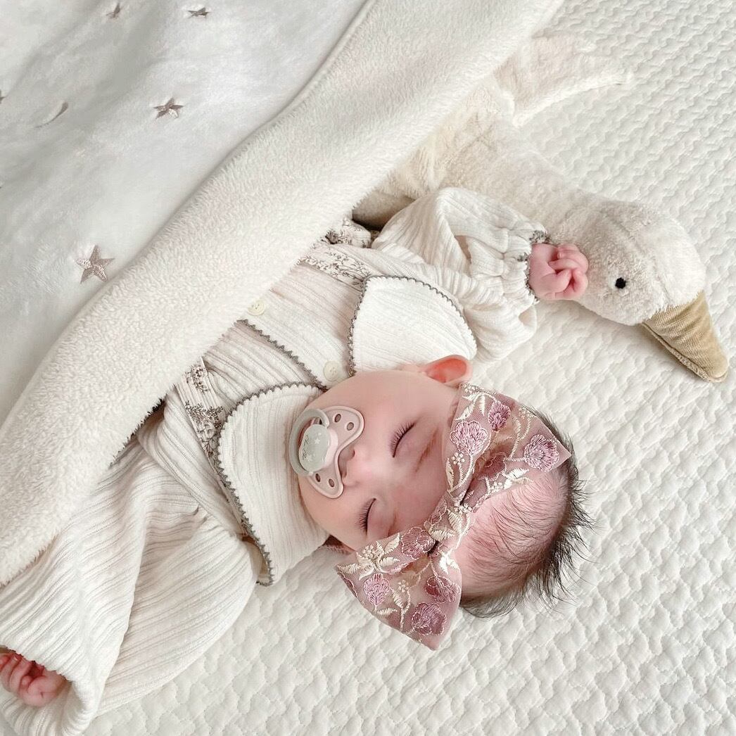 後ろでリボンを結ぶタイプなので乳児からキッズまで長く使っていただけます!