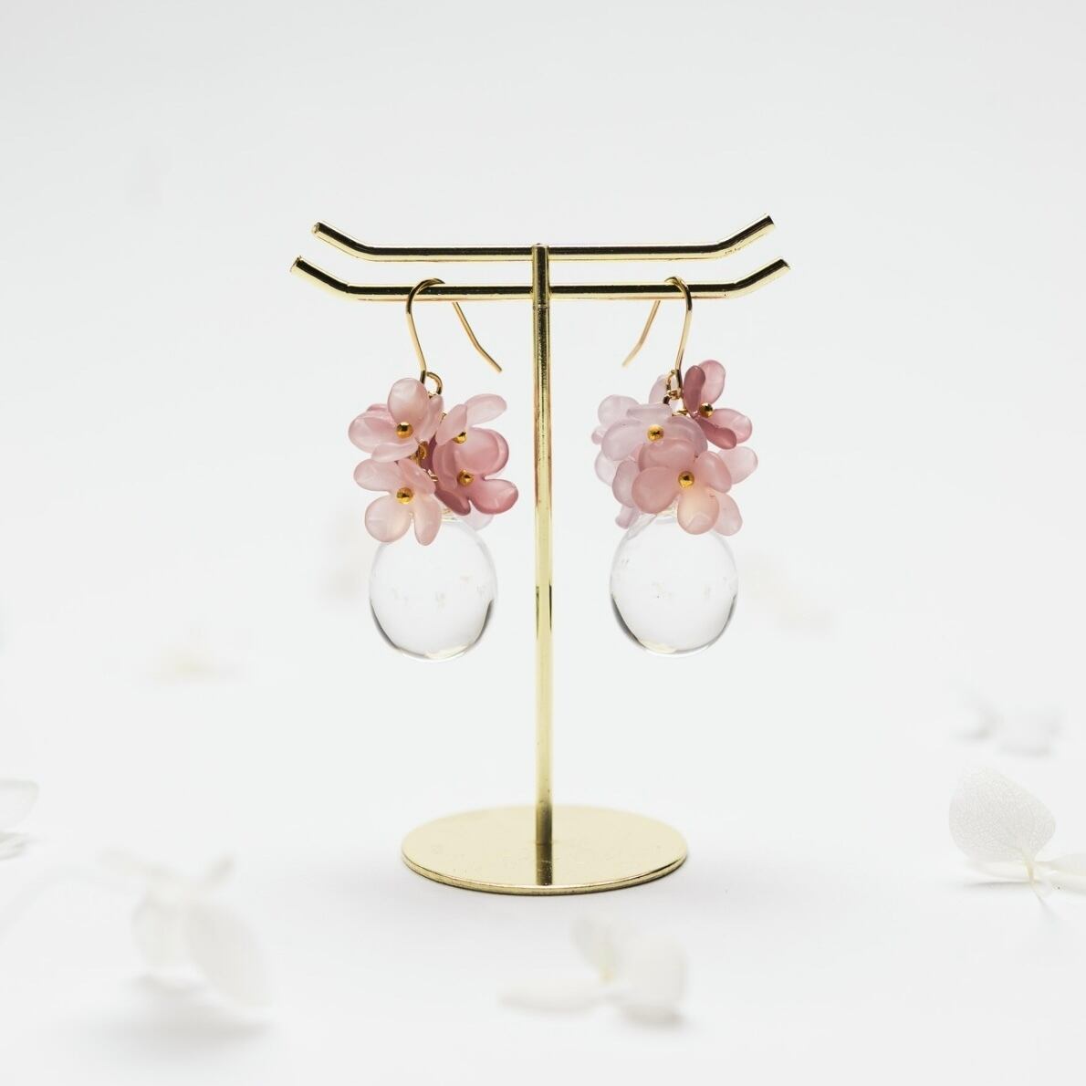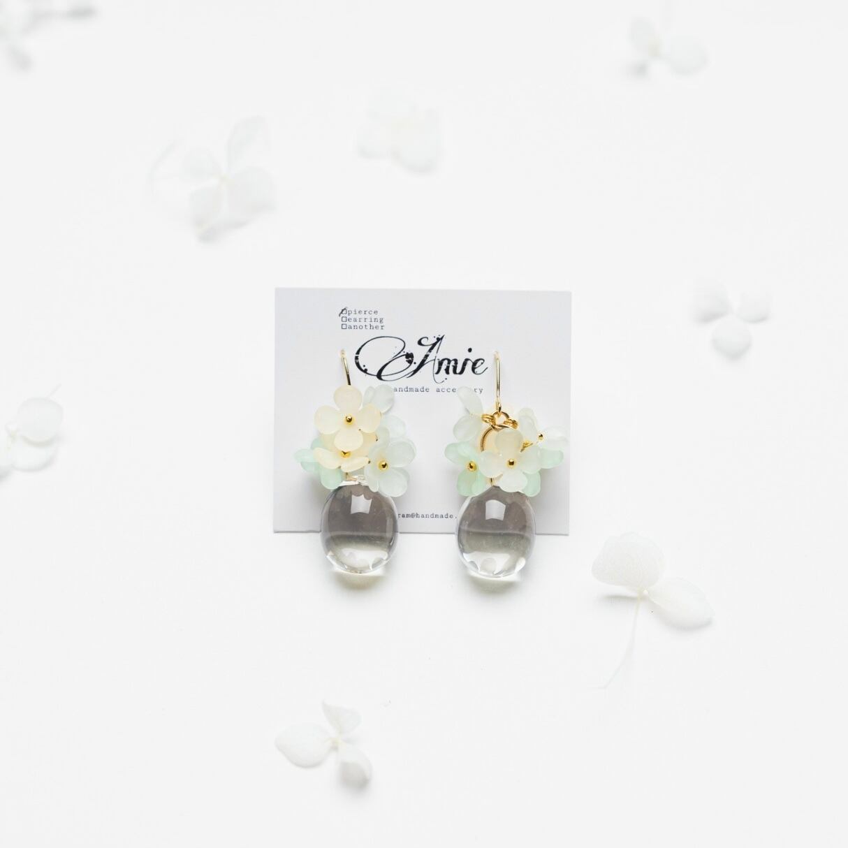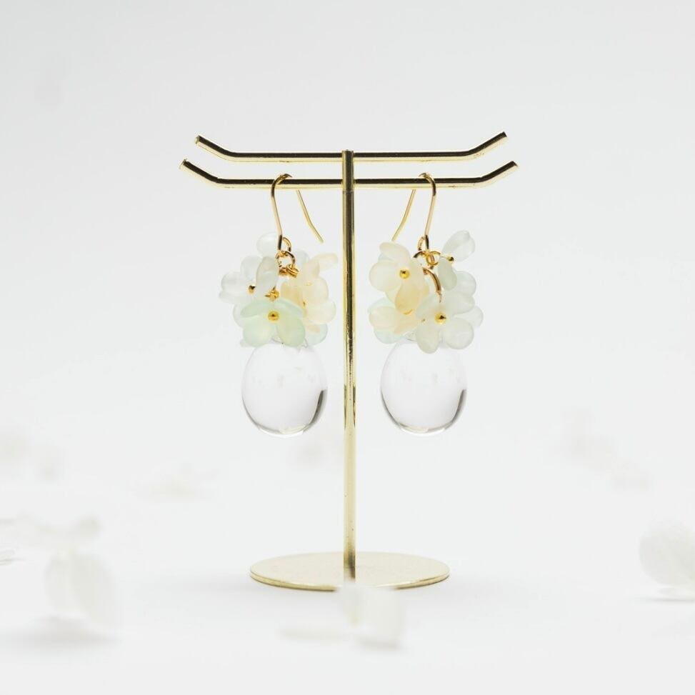 雨上がりの雨露のようなクリアビーズが涼しげな印象に!